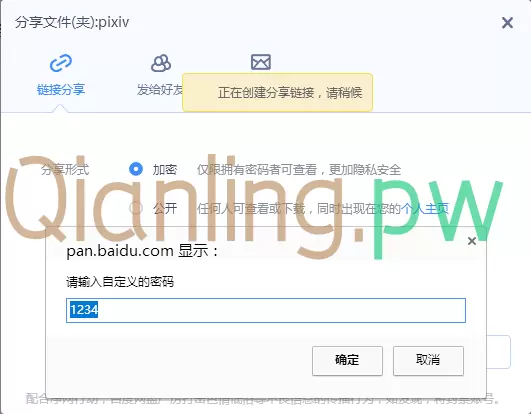 点击创建私密链接,会弹出输入框,这时输入你想自定义的密码即可
