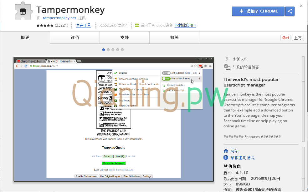 Chrome应用商店链接如下(需要梯子):tampermonkey