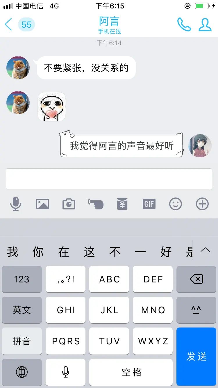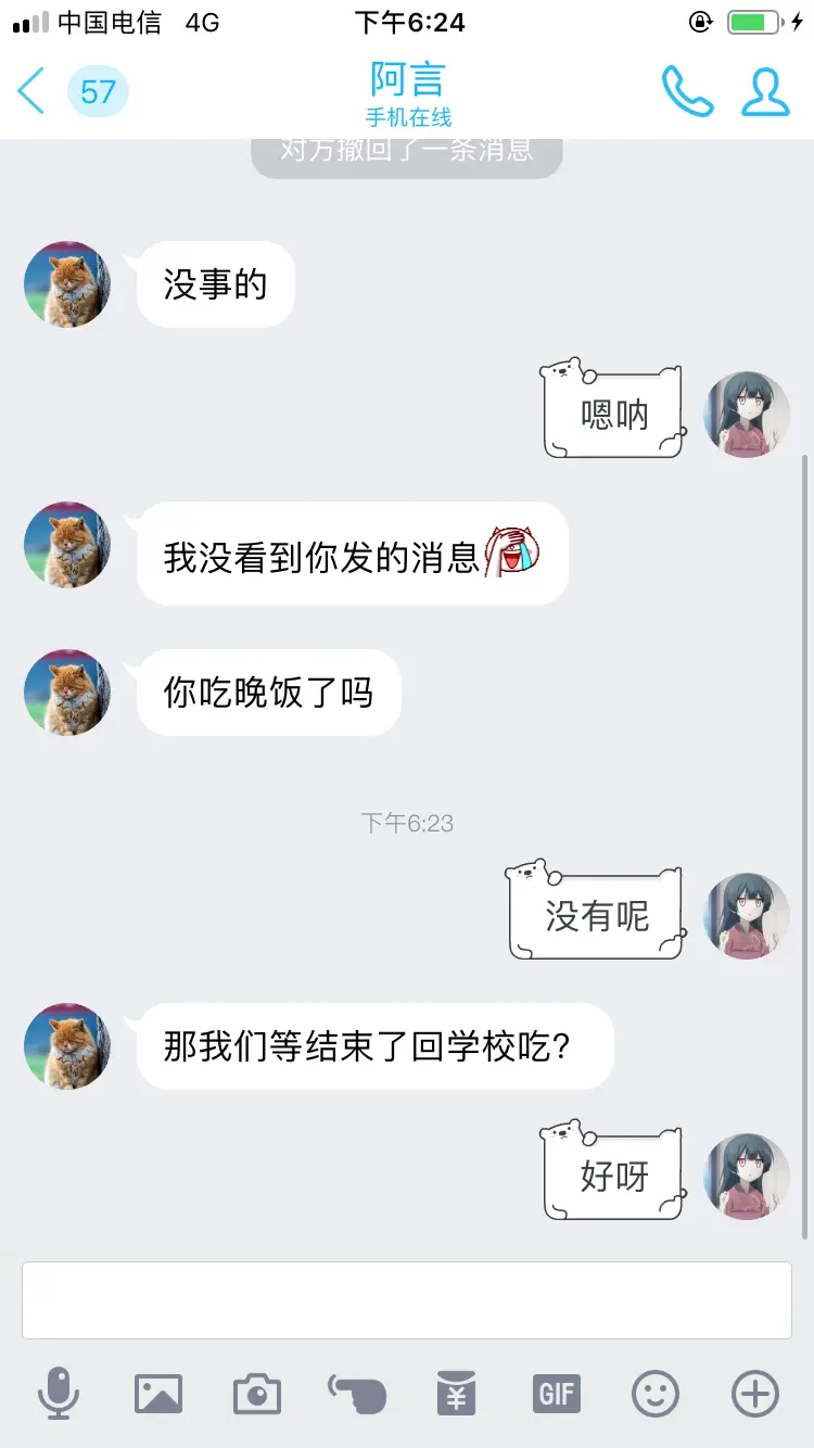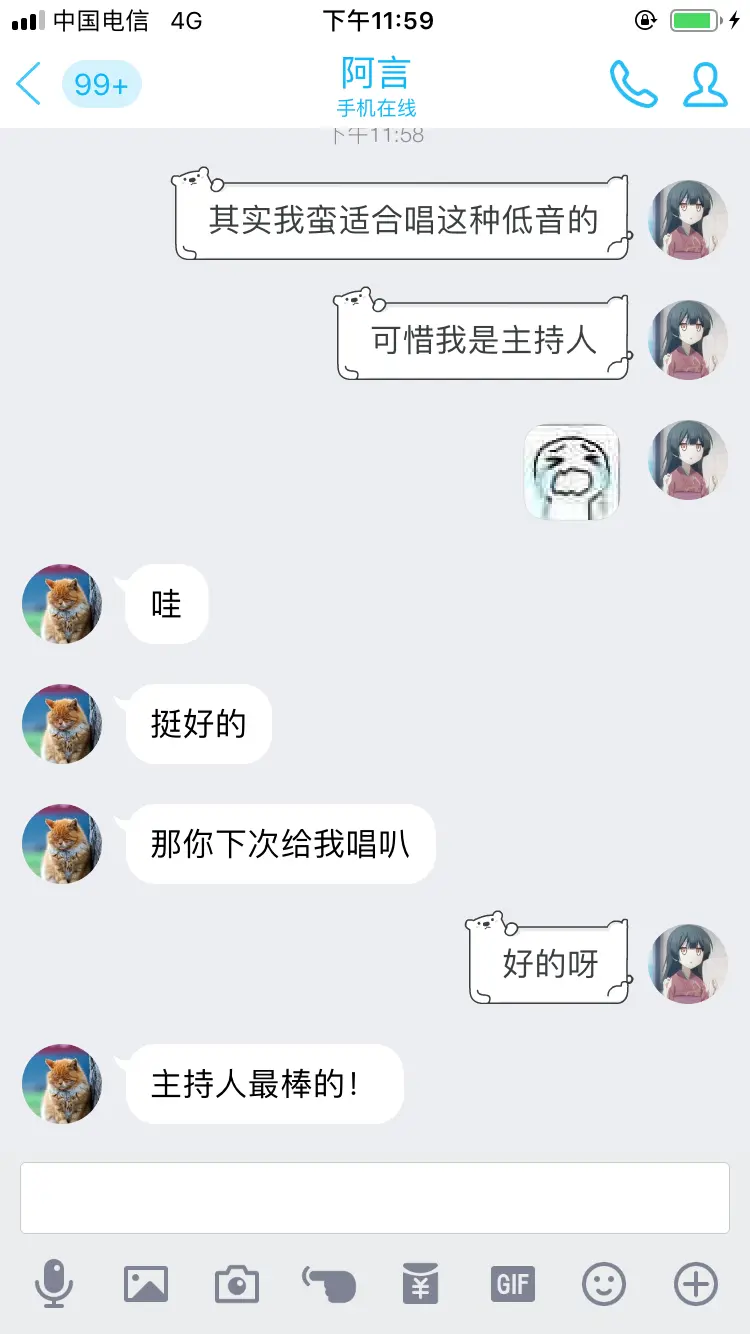 少年心事 发表于 2019-04-12 更新于 2019-04-15 分类于 随笔 阅读次数 评论数 这星期偶然遇见了上学期追求的两个妹子,都不是同一学院的,从朋友更进一步也都失败了。 她们仍旧单身,等待着那个灵魂相合的人。 打开聊天窗口,只敢点进空间关照她们的生活。 一个期中了,还是配不上这两个优秀的女生呢。 我还需要时间体验、积淀、成长,成为一个能够依靠的男人。 1月9日与阿言初识点击显示/隐藏聊天图片
