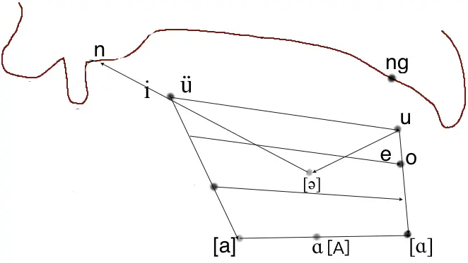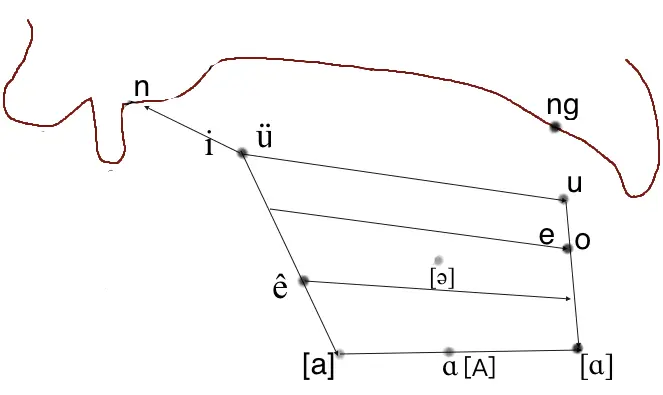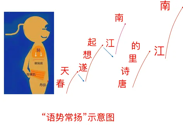 后置:背离声音由低到高,由内而外的语势轨迹,声音回置到喉部。