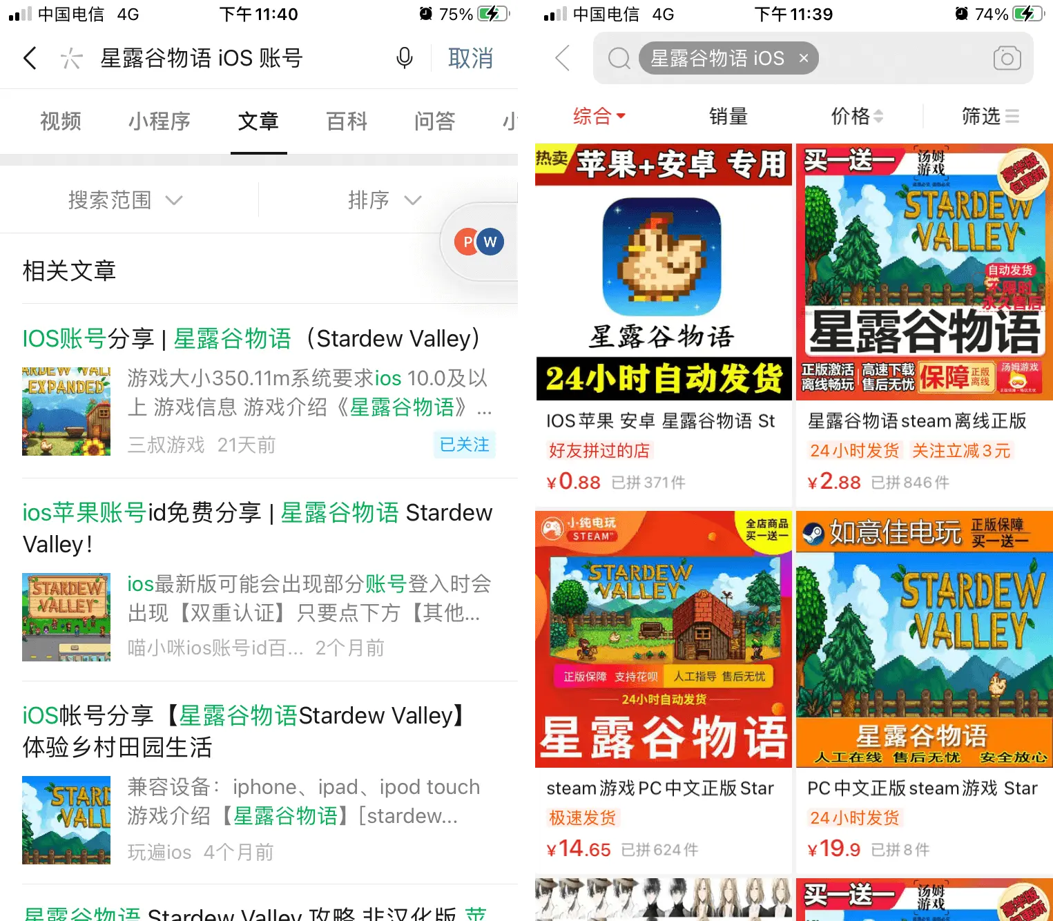 星露谷物语 iOS 账号; - 电商平台付费共享账号,平台内搜索: